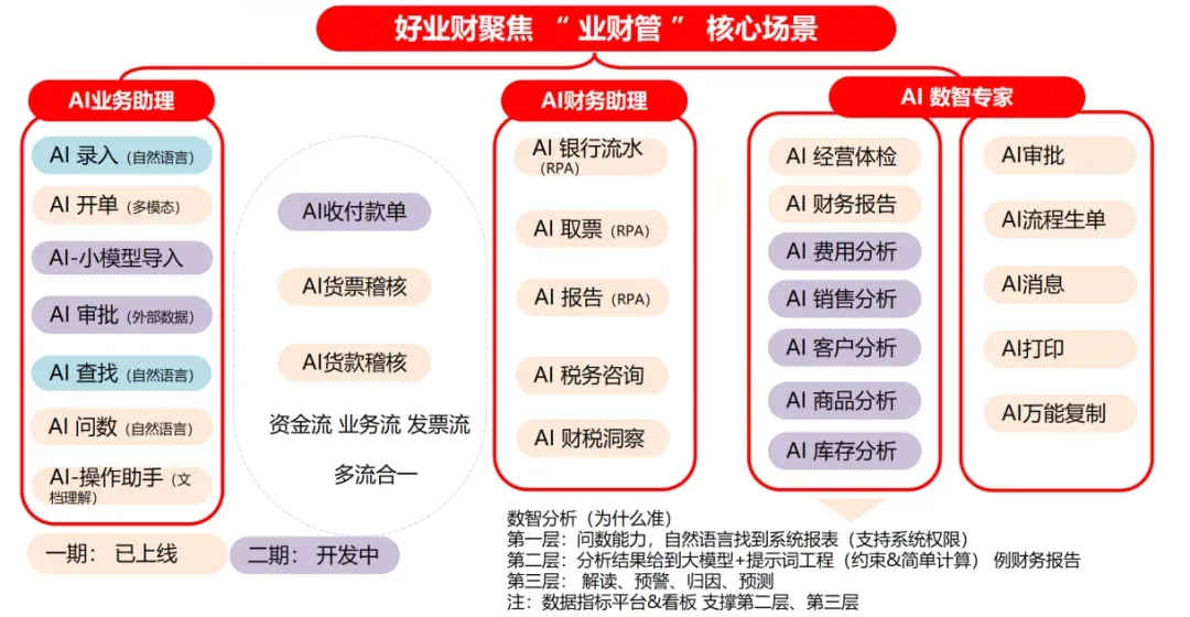 新业财:以AI重构业财融合模式,聚焦财务精准核算与税务业务一体化,推动传统财务向“价值创造型财务”转型;