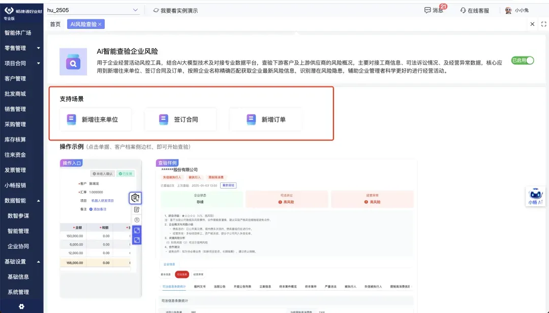 AI智能企业风险检测:直连工商大数据,实时核验客户司法涉诉、经营异常等风险信息,为您的商业合作保驾护航。