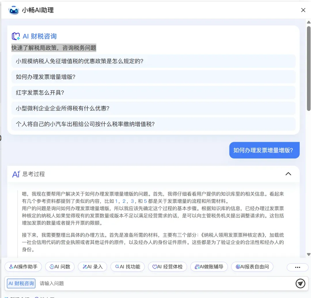 AI财税咨询:如同您企业的专属税务顾问与政策智囊,7×24小时在线,助您精准解读税局新规、高效处理各类税务难题,关键在省时提效、合规降险。