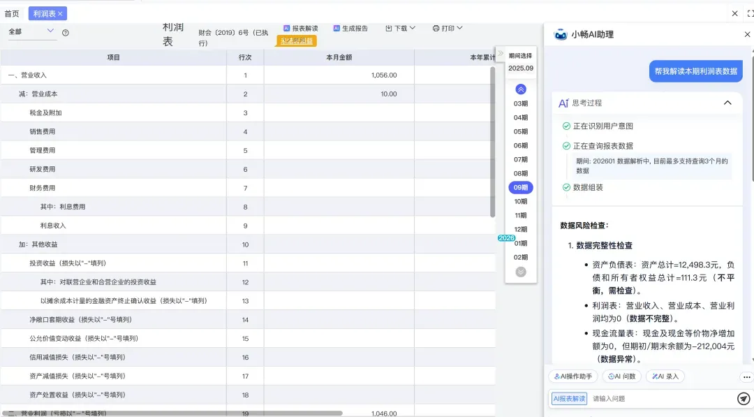 AI财务报表解读和生成报告:可自动同步资产负债表、利润表、现金流量表核心数据,无需手工汇总即能生成多维度智能分析报告,并支持一键导出,全面满足内部管理汇报与外部融资审计等多样化需求。