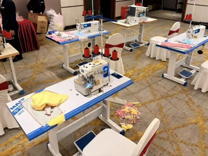 同时重点推介了拥有“无鸟巢、短线头、无油效果”美机新款双步进快单王Q7Ls和行业首个获得创造连续过坎最多的包缝机的福布斯记录的美机过坎王X10Tf。