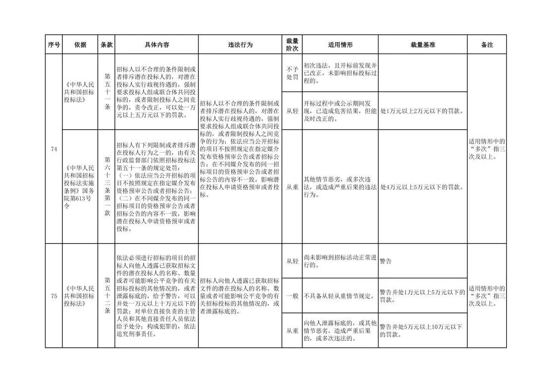 (三)招标人限制排斥投标人(对应裁量基准序号74)