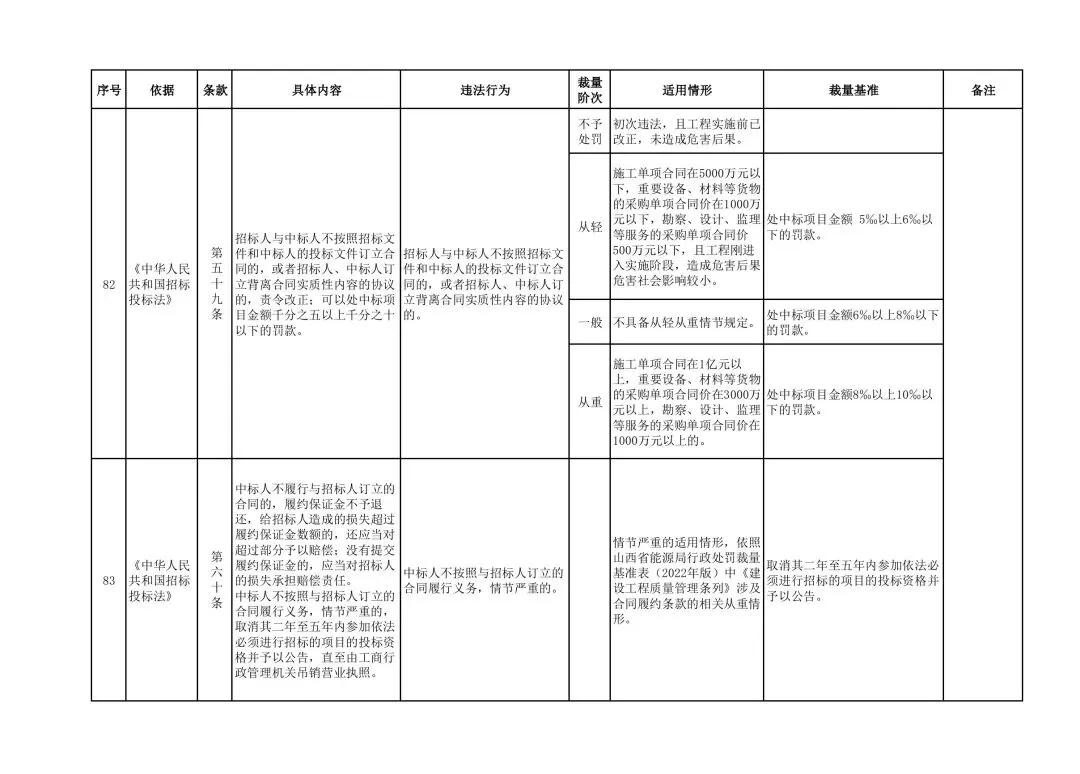 编者按:“倒查13年”,是监管部门发起的一场针对历史招投标活动的“全景式大起底”。这一行动将审查的时间轴回拨至2010年,覆盖范围涵盖所有政府投资项目及国企采购项目。审查力度空前,贯穿项目全生命周期:从最初的招标文件编制、评标过程、中标结果,到后期的项目履约、工程质量以及资金流向,均无一遗漏。山西省能源局在2025月12月修订《山西省能源局行政处罚裁量基准表(2025版)》,新增了9.行政处罚裁量基准(后附基准表)。本文是对该表内容的系统性总结。