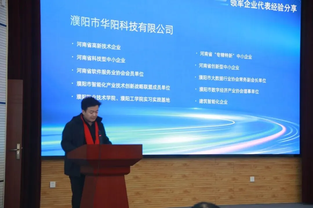 大会现场,公司总经理作为领军企业代表登台分享经验。总经理结合我司发展历程,分享企业存活与成长的五大核心思考——领导者角色从“救火队长”转向“系统架构师”、组织推进“标准化”与“透明化”、业务从销售产品转型为交付“场景化体验”、管理从“管人管事” 升级为“设计机制”、坚持以人为本实现价值共创;同时表明将以荣誉为鞭策,2026 年深化系统变革,与同行携手助力濮阳市数字经济高质量发展。