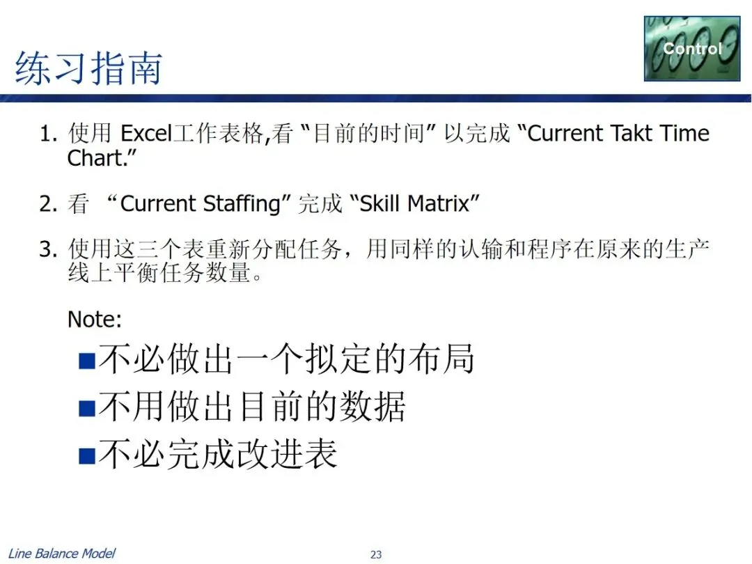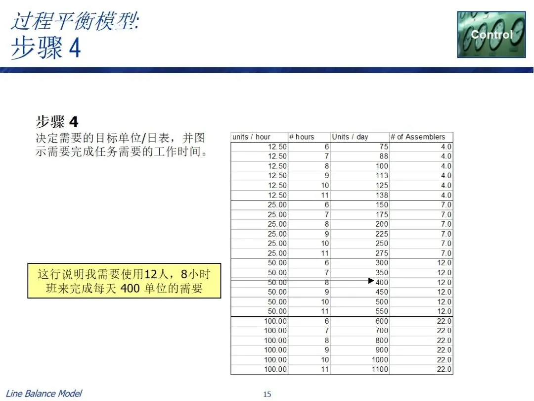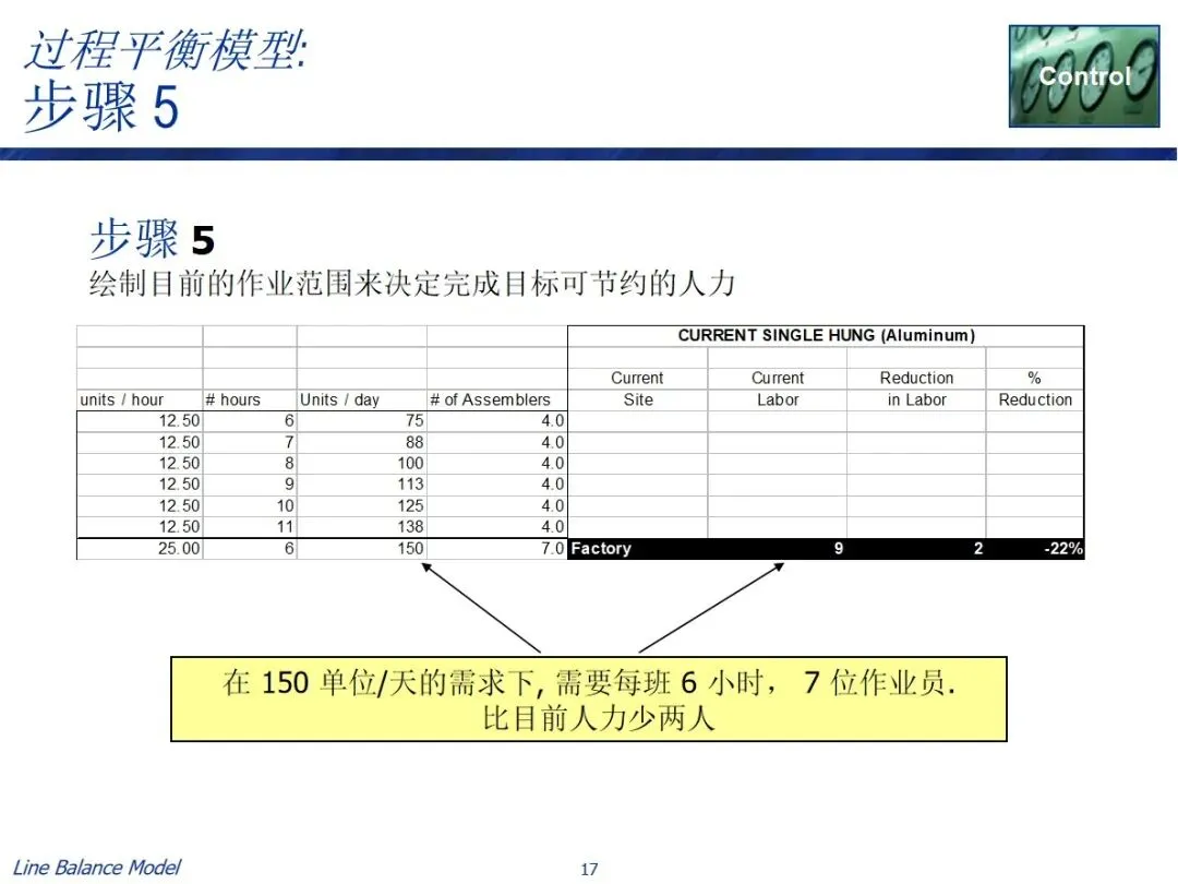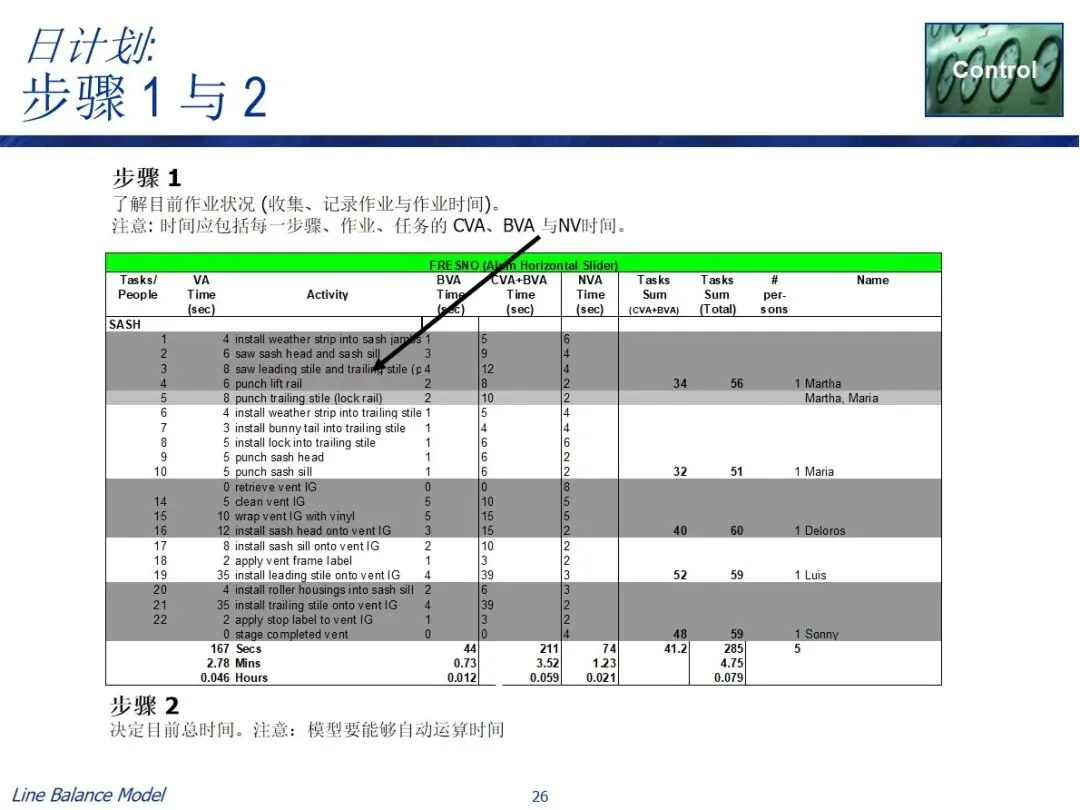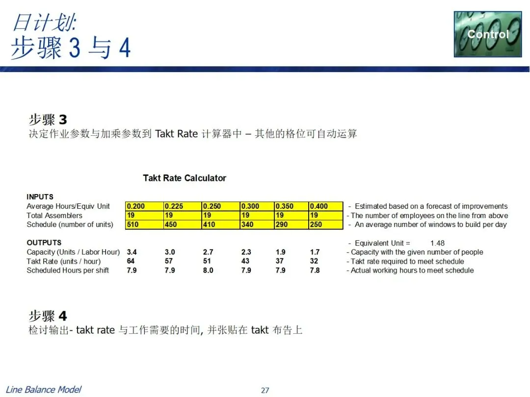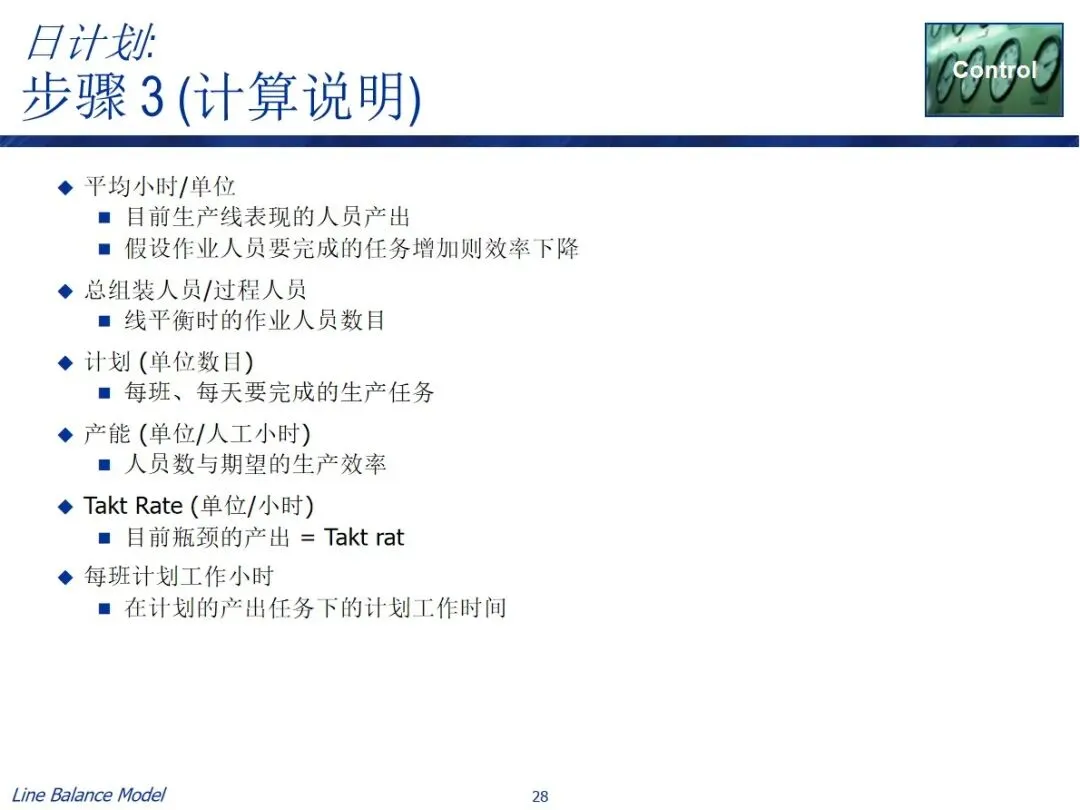 在实施过程中有两条实用的路径,一条是长期规划路径,结合预测需求、作业效率、作业时间等资料,计算出需要的作业人数和每班作业时间,从而确定长期的人员配置;每日调度器路径基于可获得的人员数目和能力参数来逆推节拍率和作业时间以引导每日的生产调度。两种方法都包含了数据采集、总工时计算、参数设置、目标匹配和任务分解的关键步骤,并利用表单工具进行了自动化操作,实现了平衡方案的可视化显示。