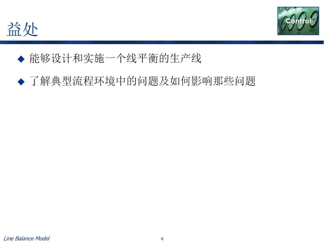 该模型的核心优点是能够准确地找出流程瓶颈,对生产能力和节拍时间进行量化,对不均衡区域进行清晰的显示。应用该方法可以使生产线达到科学的平衡,提高资源分配的效率,提高流程的灵活性,减少生产时间。同时,运用精益六西格玛的“定义—测量—分析—改进—控制”闭环管理思想,使企业能够掌握一套完整的从分析现状到不断优化的管理方法,从而提高企业的生产效率和经济效益。