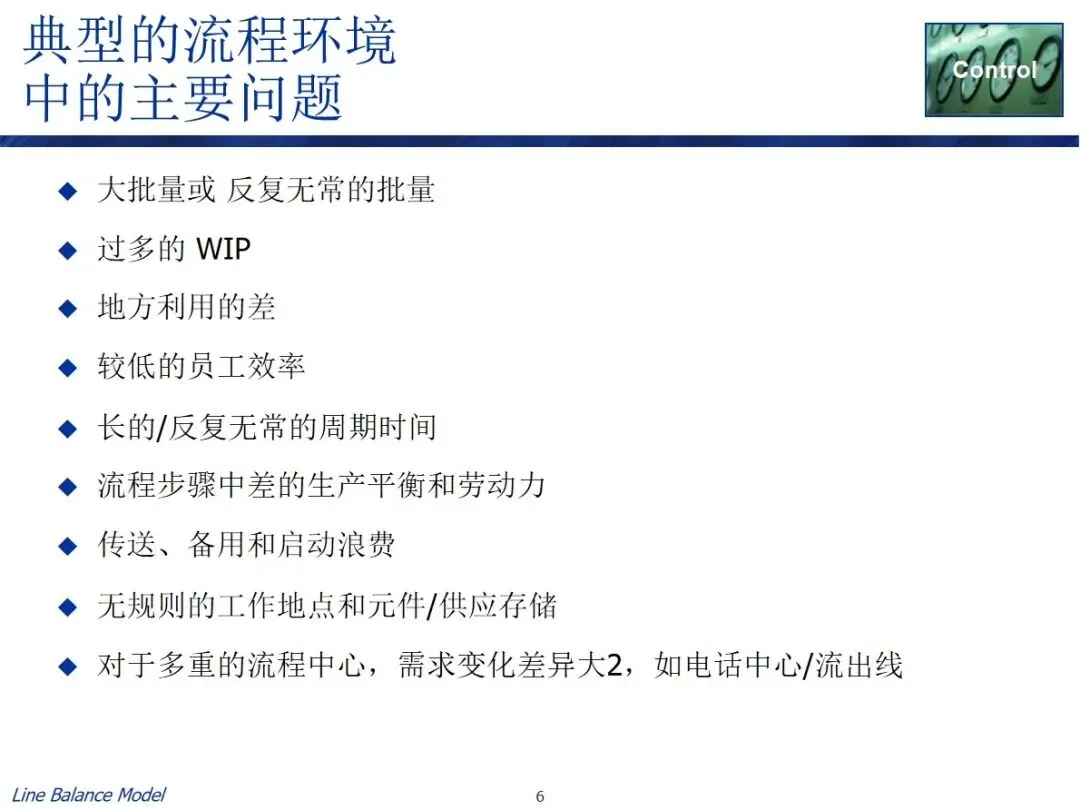 在实际的生产场景中,线平衡模式主要是为了解决一组典型的问题,所述一组典型的问题包括高波动的批量生产,严重的在制品积压,不合理的空间利用,低效率的员工,生产周期长且不稳定,流程和劳动力分配失衡,非附加值的浪费(例如,运输和备用),以及在多流程中心的高差别的需求,都是模式所关注的优化方向。