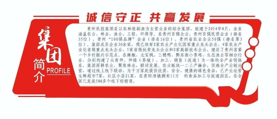 民投旗下预制菜系列,秉承黔菜悠久历史文化底蕴,坚持自主配方研发,选用新鲜的农、畜、禽、水产品为原料,配以各种辅料经预加工制成半成品或成品,主要生产加工黄焖、泡椒、滋补汤、炒制、蒸菜等系列产品,已生产黄焖牛肉、黄焖羊肉、黄焖鸡、黄焖鸭、辣子鸡、血浆鸭、泡椒麻鸭、酸萝卜老鸭汤、姜母老鸭汤、秘制滋补牛肉汤、秘制滋补羊肉汤、盐菜扣肉、粉蒸肉、夹沙肉、小米渣等几十种产品。