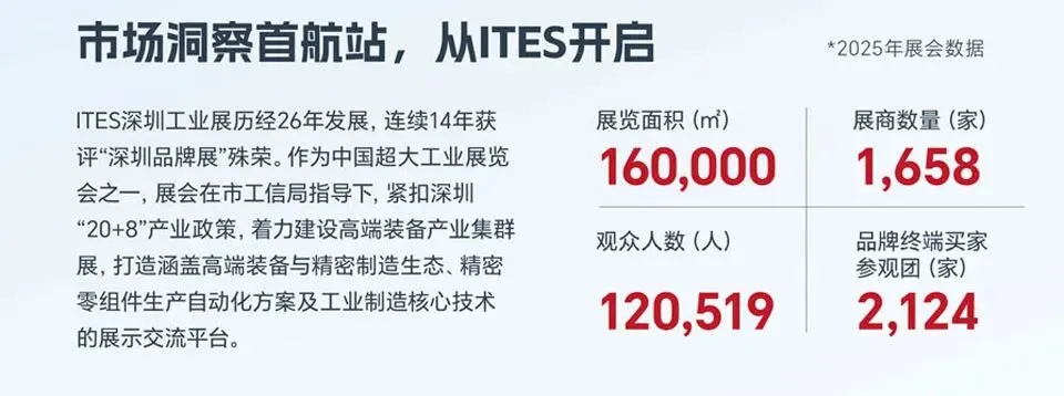 第27届ITES深圳工业展暨高端装备产业集群展将于2026年3月31日至4月3日在深圳国际会展中心(宝安新馆)隆重举办。本届展会紧密围绕“十五五”制造强国战略导向,直面企业在数字化转型、核心技术创新与产业链协同中的关键挑战,致力于打造一个高规格、专业化的产业对接平台,助力企业突破发展瓶颈、链接前沿技术与资源,为全年产业创新与转型升级注入核心驱动力,成为把握时代机遇的关键行业风向标。