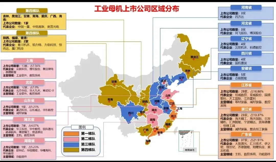 工业母机上市公司区域分布上形成产业集聚优势的制造大省: