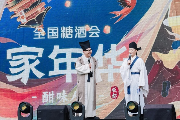 “2023全国糖酒会·家年华”活动开幕当天,以成都街头乐队的爵士、民谣、流行曲调为前奏,多场品牌主题活动轮番上演。“特仑苏有机生活荟”带来了产品秀场、马头琴表演、《只此青绿》舞蹈等艺术节目,演员以沙画的形式演绎了乌兰布和沙漠变绿洲的故事。夜幕降临时,锦城游园灯会推出了汉风主题巡游、汉服舞蹈古乐快闪、汉服NPC沉浸式游园等一系列节目,簪花仕女图空降舞台现场,带来古画复原的视觉冲击,重现巴蜀盛景,再现千年成都。表演间隙,长城葡萄酒奉上了互动抽奖活动,现场观众边欣赏视觉盛宴,边享受中奖的乐趣。