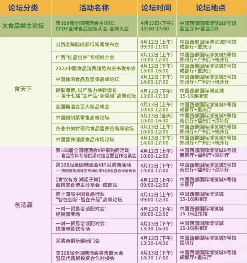 1)第108届全国糖酒会主论坛(大食品板块):CFDF全球食品创新大会