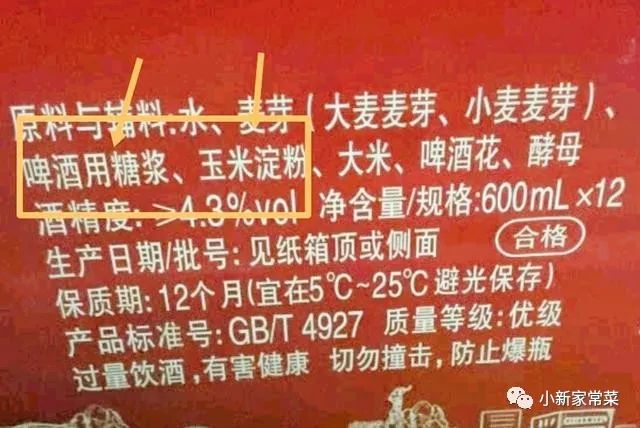要挑选一罐优质啤酒很简单,但不能只看品牌,也不能说进口就是好,最重要还是看配料表和麦汁浓度这两个硬性标准,而配料表,则是啤酒质量好坏的“照妖镜”,啤酒不管国产还是进口,只要配料中有“2料”,都是“勾兑水啤”,这2料就是“糖浆”和“玉米淀粉”。