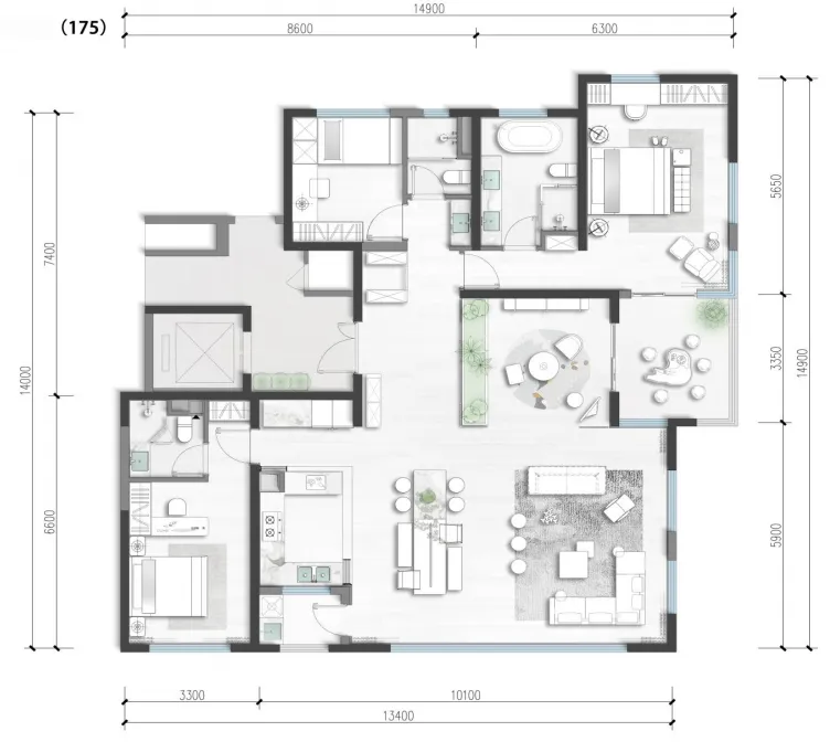 建面约176㎡户型,更是万科将成都豪宅200㎡+布局在昆明的首创落地之作。4室2厅3卫,类四代宅109%得房率,10米的超大客餐开间,实得面积堪比传统的180㎡平墅级居住体验。