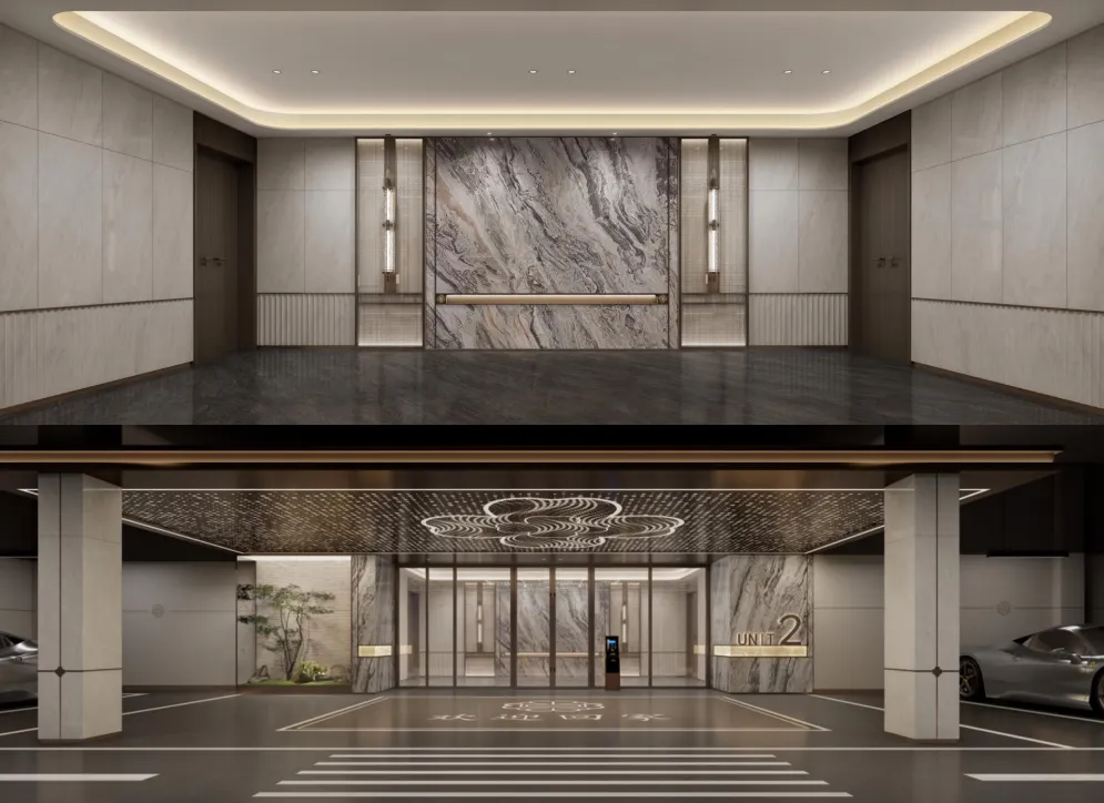 双首层定制化酒店式归家大堂、东方安缦酒店度假风穹顶、酒店式电梯厅、定制星空顶地库、全景玻璃幕墙封窗、全屋中央空调、大规格墙地砖等,可对标豪宅公区、立面的配置标准,也会照搬到万科棠月东方的全维度提升中。