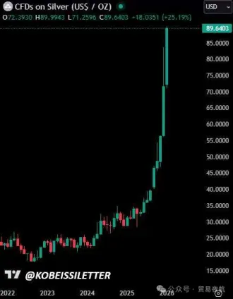 在2025年底至2026年初,科技股的疲软导致市场资金开始流动,从高风险资产转向硬资产。白银由于波动性较大,成为了投机资金的重点目标之一,尤其是在美元走弱和全球经济不确定性的背景下,白银的价格上涨远超黄金,成为了全球投资者关注的焦点。