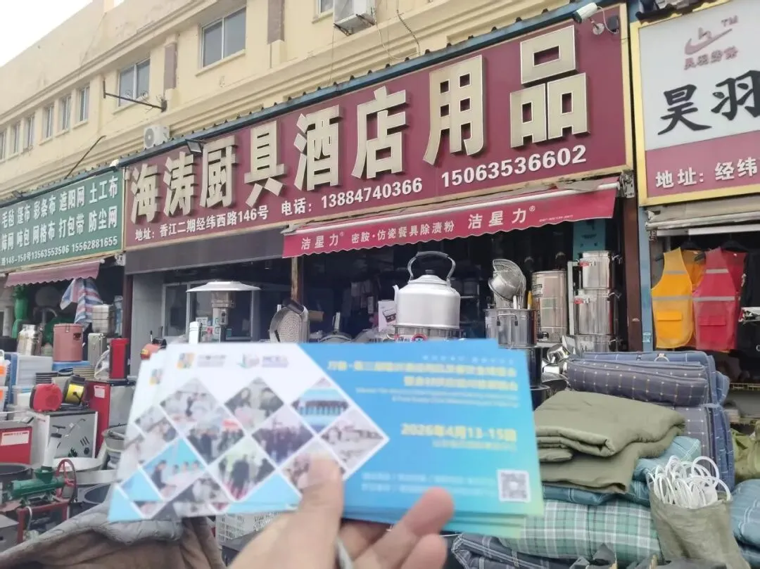 第一站我们直击茌平林庄商贸城,这里聚集了大批基础酒店用品商户,涵盖锅具、餐具、清洁用品等品类,主要服务周边中小餐饮门店与小型酒店,刚需采购需求稳定且频次高。不少商户表示,目前正需要对接源头参展商,优化供货渠道、提升产品性价比。