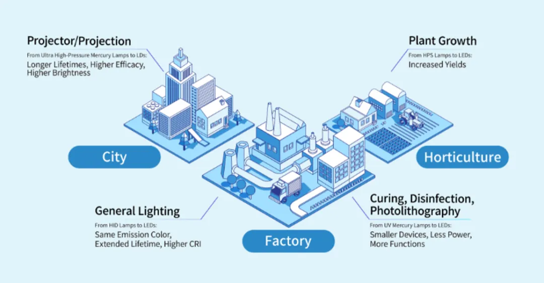 日亚化学表示,基于可持续制造理念,公司目标在2030年前完成全生产线汞灯的替换。