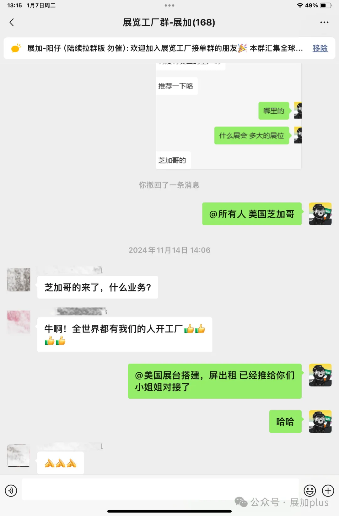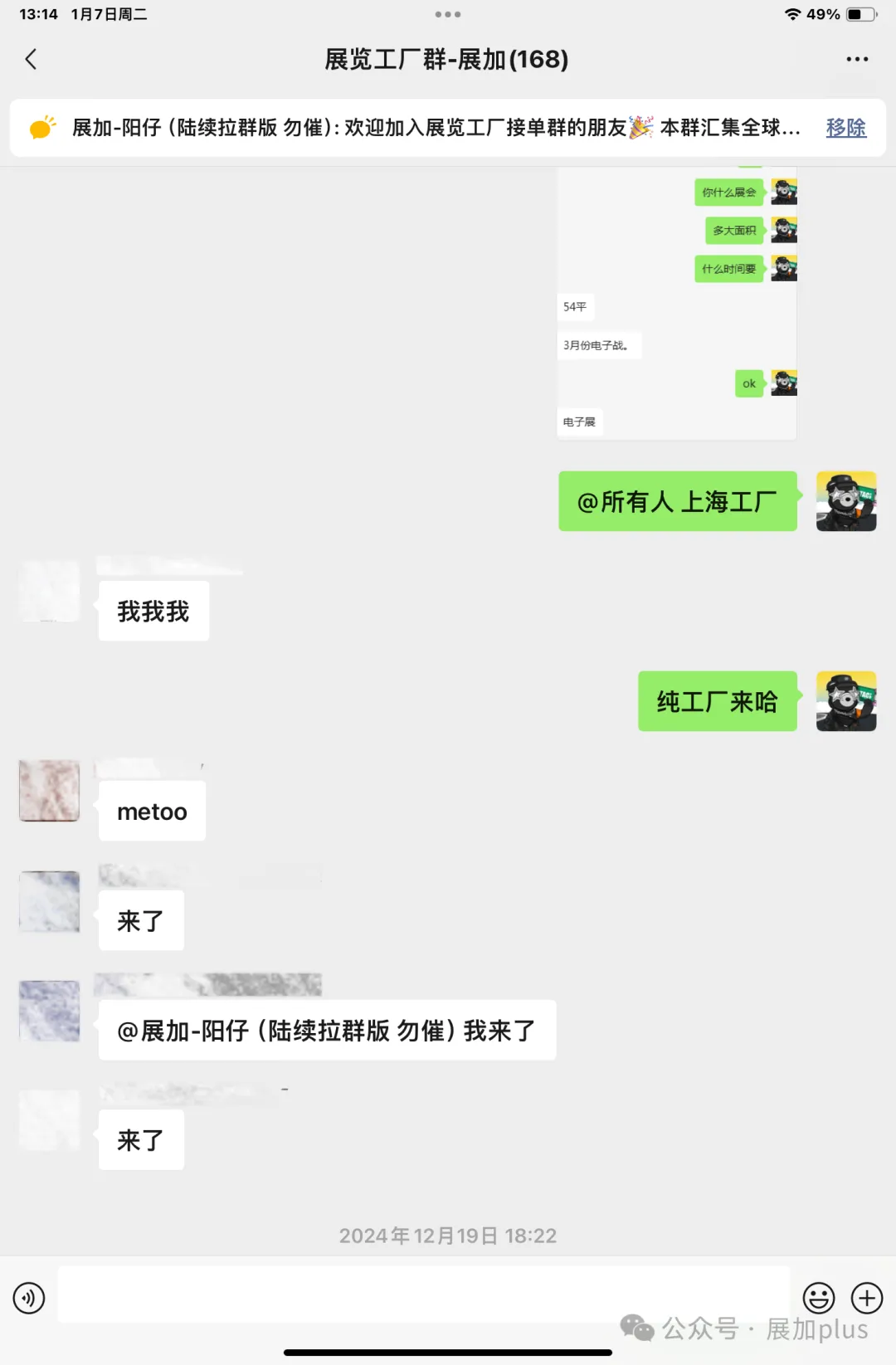 作为展会领域新媒体,展加一直为行业从业者提供交流、合作的平台,如线上合作、线上情报社群、线上分享群······