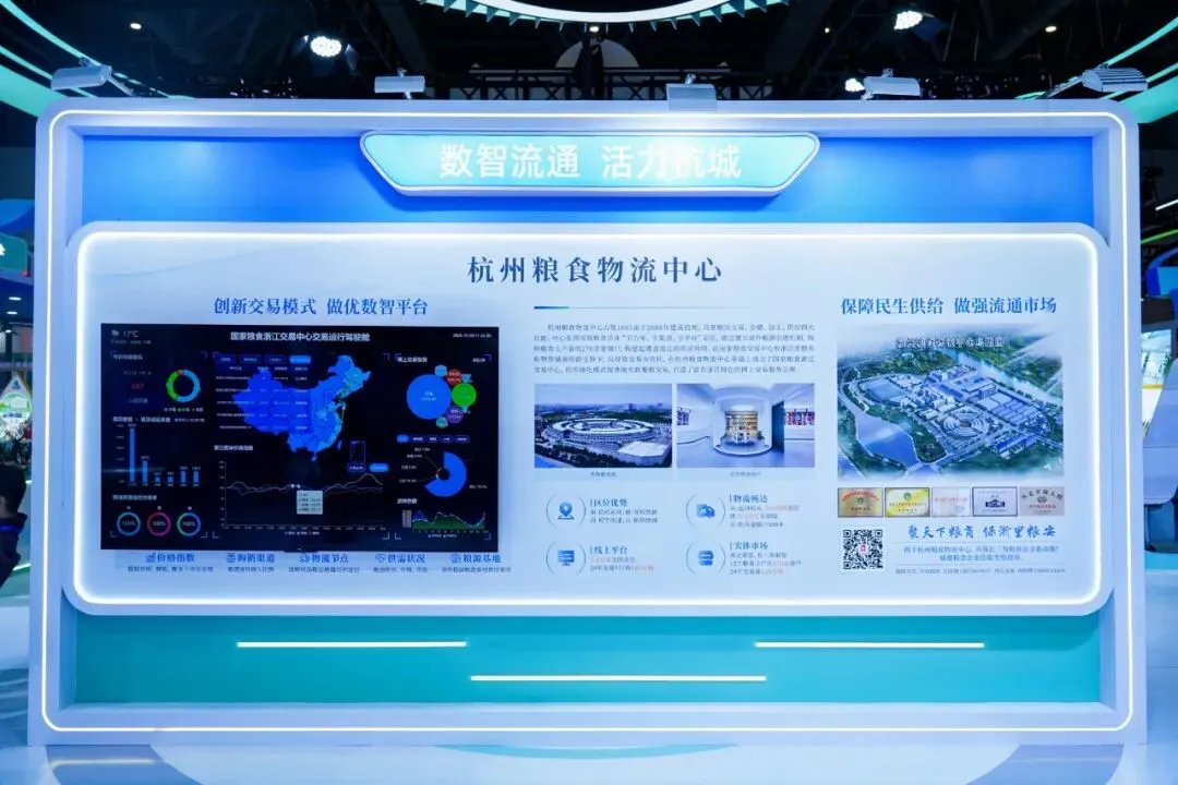 在产业实践与展馆特色上,杭州粮食物流中心打造全国首创的粮油交易数字驾驶舱,动态呈现稻米价格指数、物流态势、现货行情等核心指标,线上线下年交易总量近 400 万吨,成为覆盖浙江、辐射全国的流通枢纽。