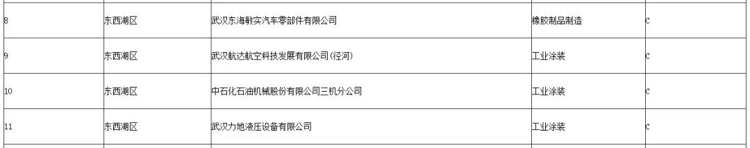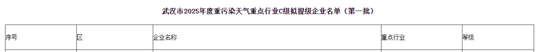 东西湖企业:关于武汉市2025年度重污染天气重点行业C级拟提级名单(第一批)的公示中涉及东西湖的部分