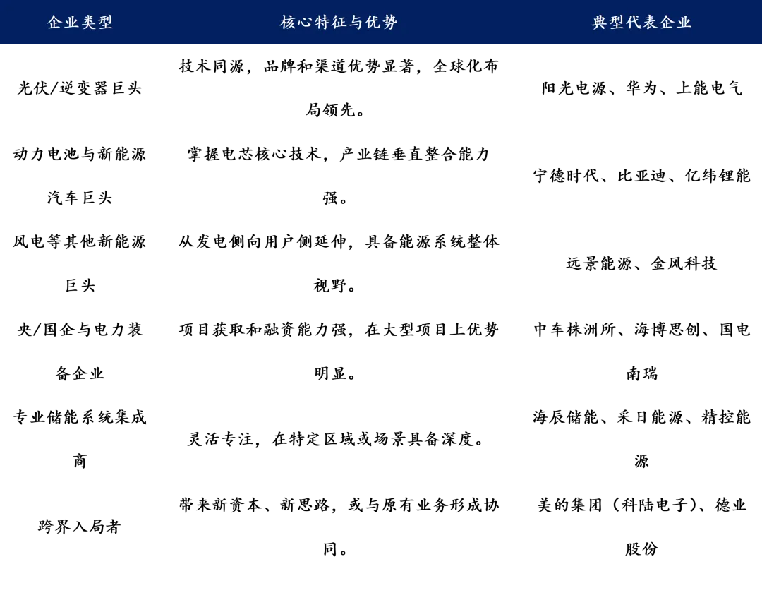 储能系统安装:偏工程服务,负责储能系统的落地实施,布局企业以电力工程、基建巨头为主(如特变电工、中国电建、中国能建),依托电力工程资质和项目资源承接大型储能项目的安装交付。