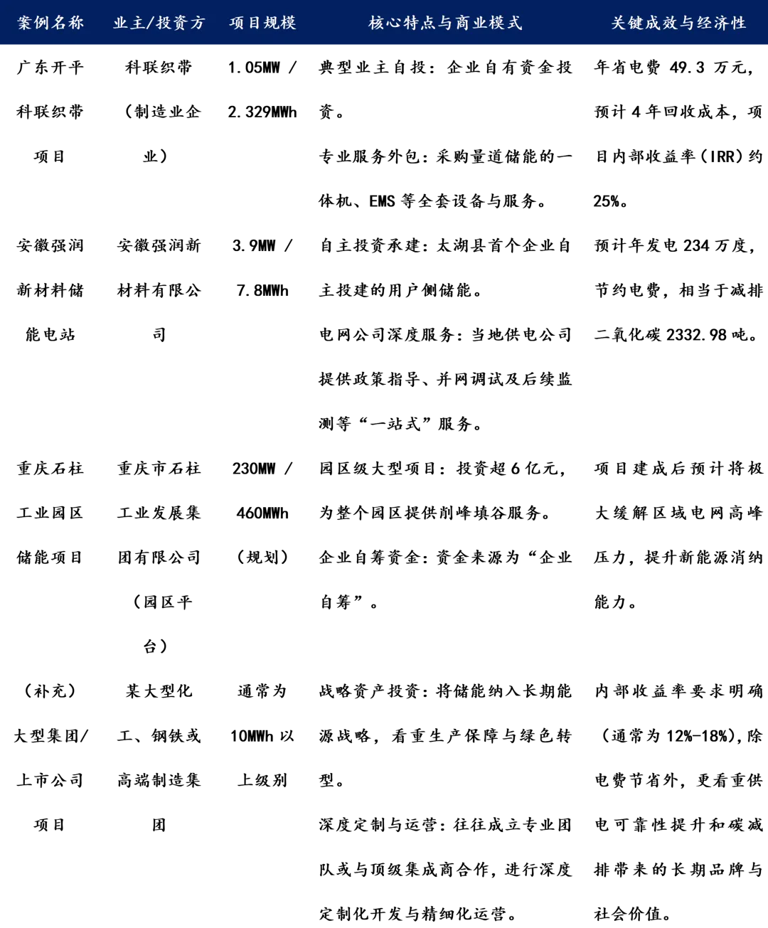 “业主自投自建”是工商业储能中门槛最高、但资产控制力最强的模式,适合那些将能源管理视作核心竞争力组成部分的龙头企业或大型园区。