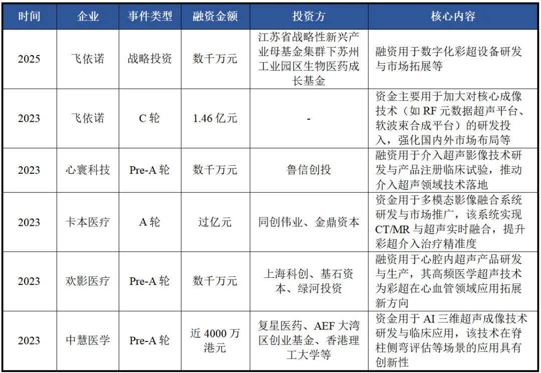近三年中国彩超设备资本市场呈现出龙头冲刺上市、资本聚焦专科前沿并行的格局。超研股份于2025年1月成功在A股上市,另一头部企业飞依诺科技于2023年获得1.46亿元C轮融资、2025年6月又获数千万元战略投资后,在2025年8月重启上市辅导。迈瑞医疗正式启动了在香港联合交易所主板二次上市的计划,并在2025年11月10日正式向香港联交所递交了上市申请。