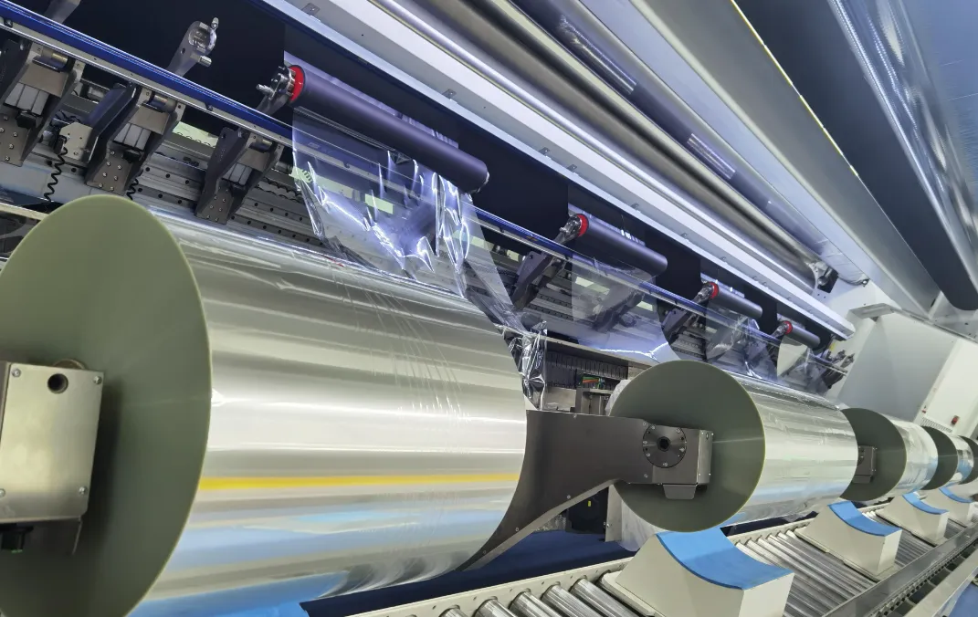 挤出模具出口处的熔体被送入三辊压延机。三辊压延机是将熔体压延成薄片的关键设备。它由三个平行的辊子组成,通过调整辊子的间距和转速,可以控制片材的厚度和光滑度。在压延的过程中,片材通过冷却系统进行快速冷却,使其固化并保持所需的形状。