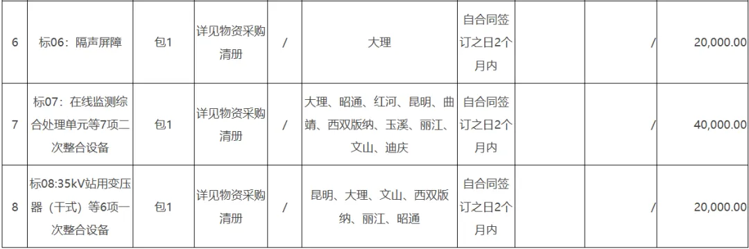 2.1项目概述:本次采购主要为纳入公司2025年固定资产投资的基建项目物资,包括变电生产运行支持系统、预制舱、10kV及35kV高压开关柜(改扩建项目)、安稳装置、混泥土制品、隔声屏障、在线监测综合处理单元等7项二次整合设备、35kV站用变压器(干式)等6项一次整合设备等8类设备。