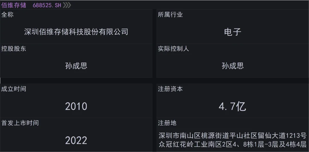 佰维存储全称叫做深圳佰维存储科技股份有限公司,注册地在广东省深圳市,股票2022年在上交所上市,公司的控股股东和实际控制人都是孙成思,组织形式属于大型民企,审计机构是天健会计师事务所。