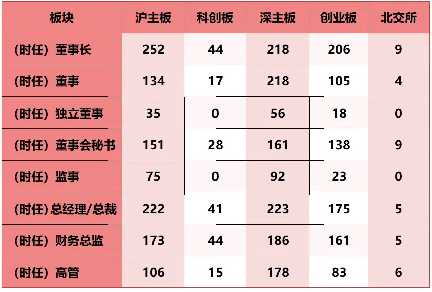 各板块董监高违规情况如下: