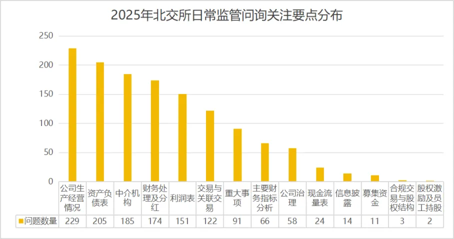 沪深北交易所2025年日常监管问询关注要点分布具体如下: