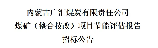 根据《中华人民共和国招标投标法》以及相关法律法规,遵循公开、公平、公正和诚实信用的原则,内蒙古广纳煤业(集团)有限责任公司招标部就内古广汇煤炭有限责任公司煤矿(整合技改)项目节能评估报告展开国内公开招标,诚邀内企业单位前来参加投标。