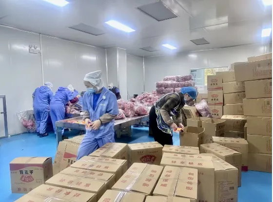 1月14日,地处贵阳开阳县禾丰乡穿洞村的贵州馋解香食品开发有限公司正被交货时间推着跑。“得益于‘零食很忙’‘好想来’等知名品牌的合作,车间一天就得出货2000件油炸土豆丝(片),最近又接到了韩国客商的500件订单。”该公司董事长汪红旗忙得好几天没睡过一个囫囵觉,“往年这个时候,生产端与销售端还能基本同频,但现在货销得太快,60个人都不够用了,还得另招20多个人。”