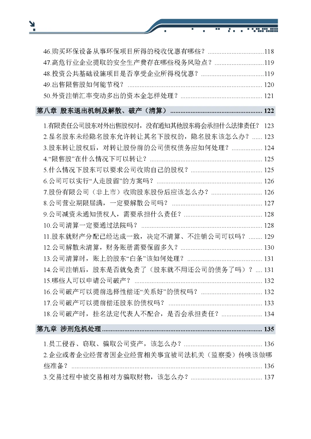 包括:公司设立、公司法人治理、公司融资、日常生产经营、安全生产、公司人力资源管理、公司税收风险防控、股东退出机制及解散、破产(清算)、涉刑危机处理