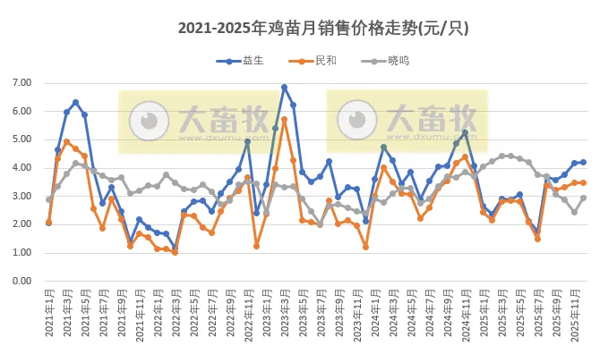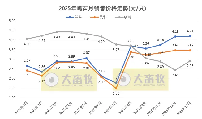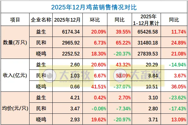 2025年12月,3家企业鸡苗销售数量、收入和均价大多数以增长为主。