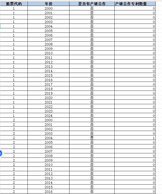 股票代码 年份 是否有产研合作 产研合作专利数量
