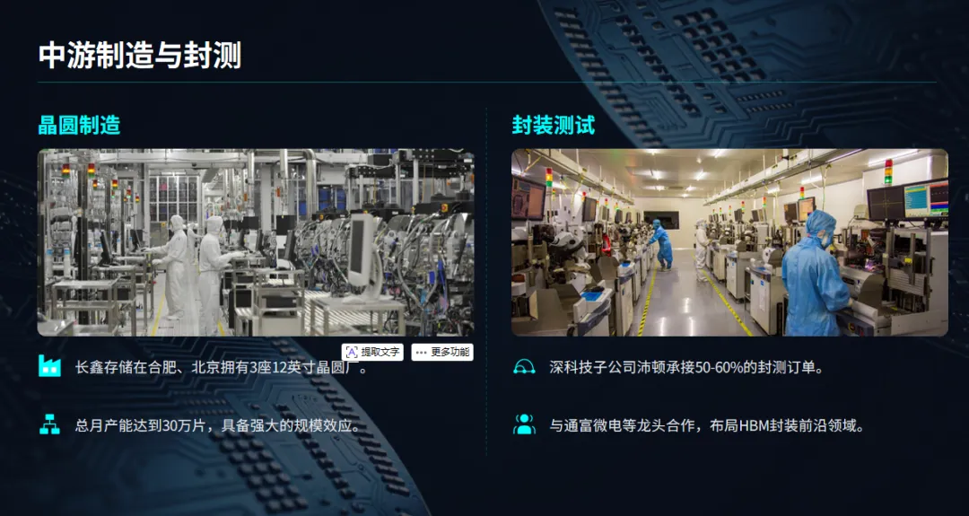 长鑫存储作为国产存储芯片的绝对核心,处于产业链中壁垒最高、难度最大的环节,它与上下游应用共同构成了完整的产业生态,覆盖从上游材料、中游制造到下游封测应用三个层面。