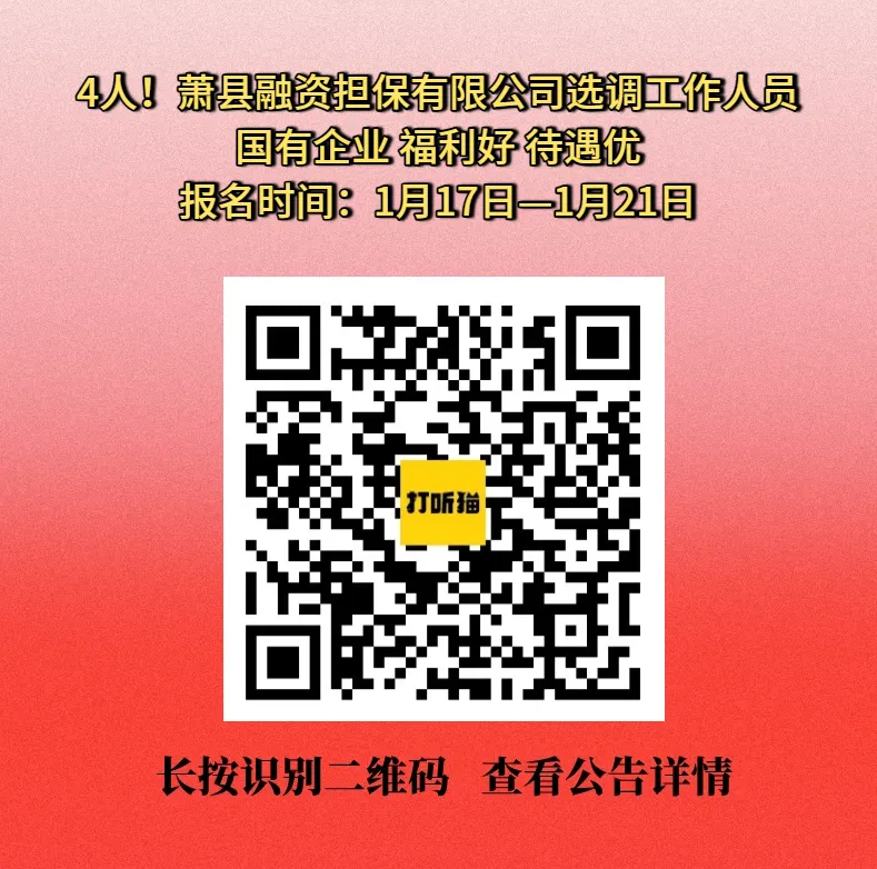 【宿州招聘】4人!国有企业!萧县融资担保有限公司选调工作人员!?戳这里关注我,看最新招聘信息?