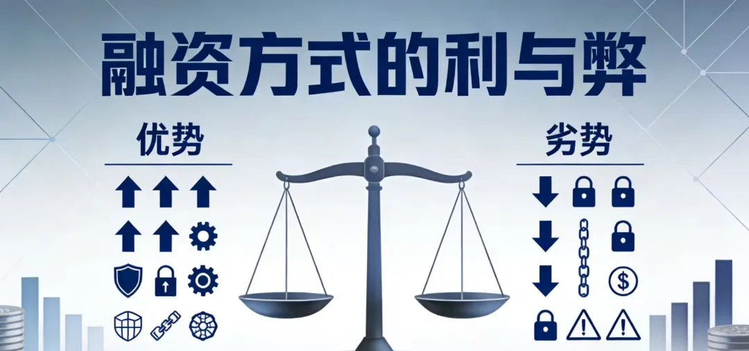❌ 弊端:稀释股东股权,削弱控制权;融资流程繁、成本高;需披露经营财务信息,易泄露商业机密