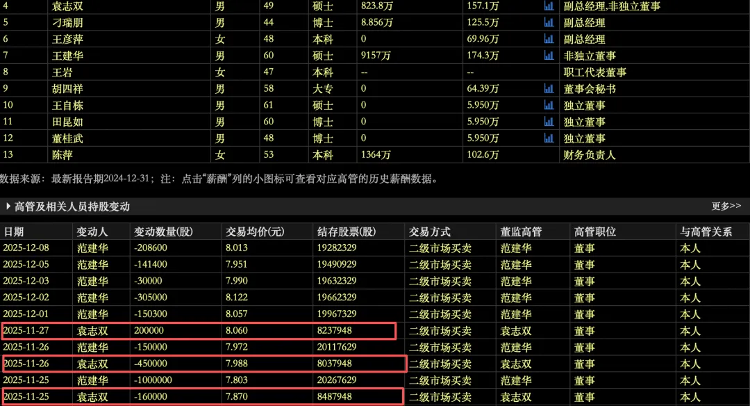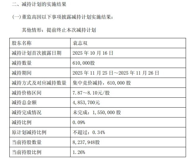 公开信息显示,2025年11月25日、11月26日,袁志双分别以7.87元/股、7.98元/股的交易均价减持了16万股、45万股,但在次日(11月27日),又以8.06元/股的交易均价买回20万股。
