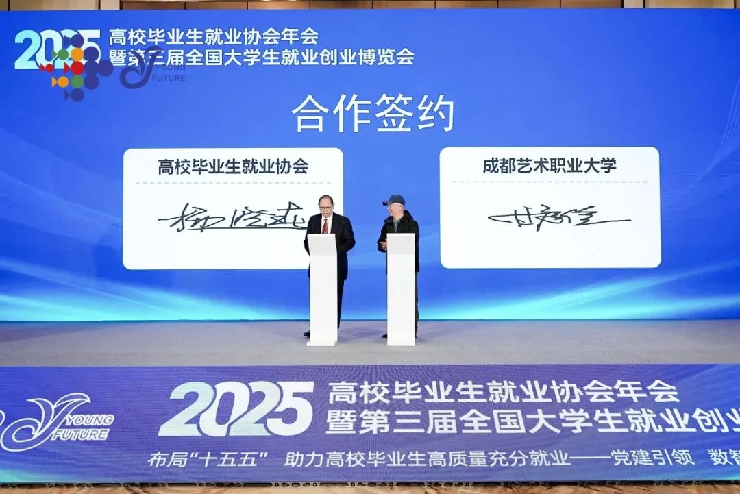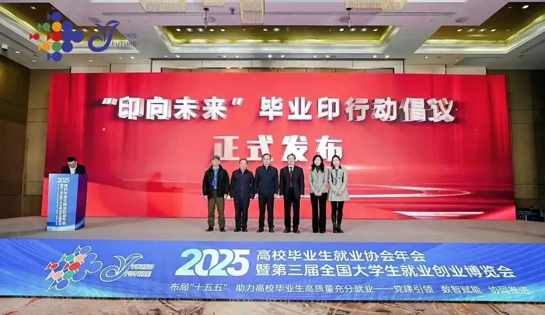 会上,甘庭俭副校长受邀参加“印向未来”毕业印行动倡议活动发布仪式,与来自全国各高校、行业协会及企业的代表共同见证这一重要时刻。仪式现场,甘庭俭副校长代表学校与高校毕业生就业协会正式完成项目签约,这既是学校对倡议精神的积极响应,更是双方深化合作、共推毕业生高质量就业的具体实践。