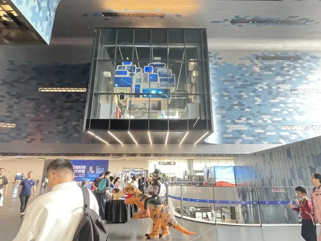 深圳科技馆是国内一流水准的大型科技馆,建筑外形充满科技感,入口大厅的五星红旗与大型玻璃幕墙构造的景象让我们大为震撼,更加震撼的是这里罗列了人类社会几乎所有的科技发展进程,让我们具象化地看到了人类数字化时代的科技进步。除了内容之外,深圳科技馆让“沉浸式展览新空间”具象化了,尤其是在“宇宙展厅”当中,我们仿佛置身于浩渺的宇宙当中,沉浸式地感受“宇宙”。带领我们参观的科技馆讲解人员全程热情讲解,播音功底极其强大,体验感拉满!