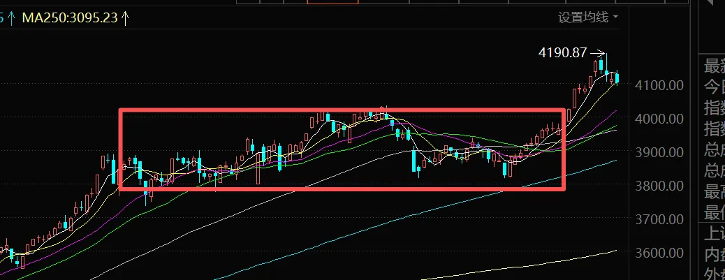 一是上证的高位箱体底锚定看3950,在此上方保持震荡,则为强势震荡(重现九月初情景)