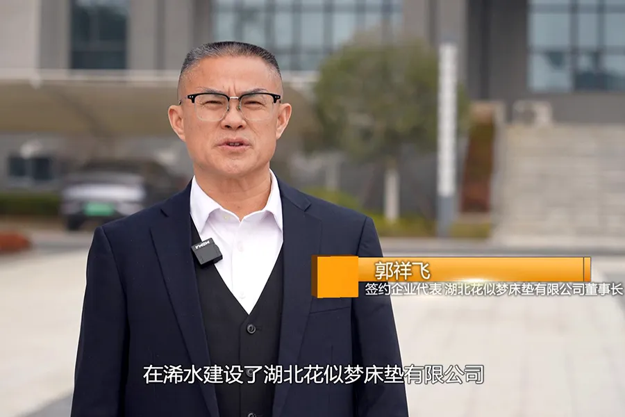 签约企业代表、 湖北花似梦床垫有限公司董事长 郭祥飞:我是浠水人,在浠水建设了湖北花似梦床垫有限公司,我们即将上马的项目是压缩沙发,主要出口到欧美。项目一落成,会给浠水带来很多的就业岗位还有税收,在浠水还是很有发展的,整个配套方面越来越完善,我感觉很有盼头。