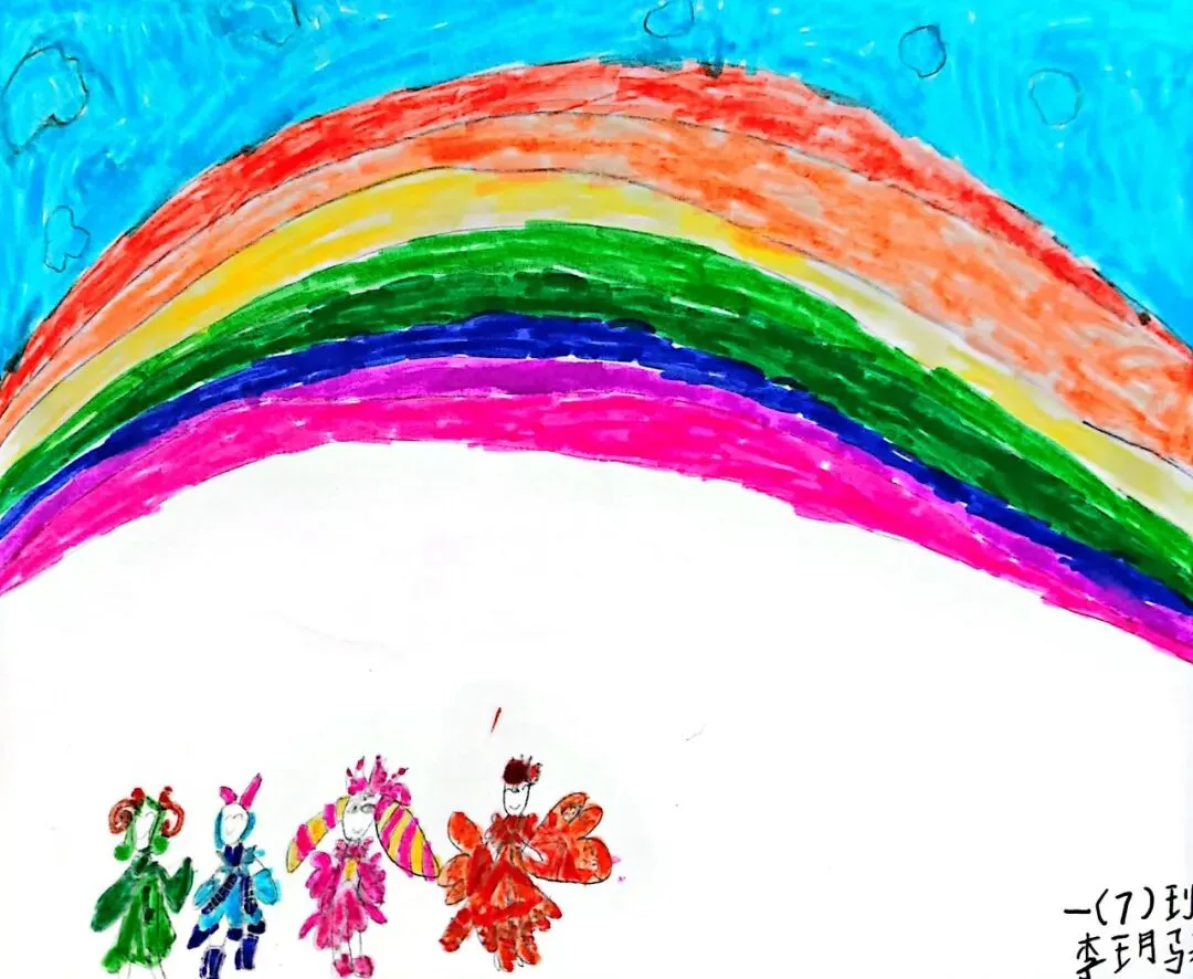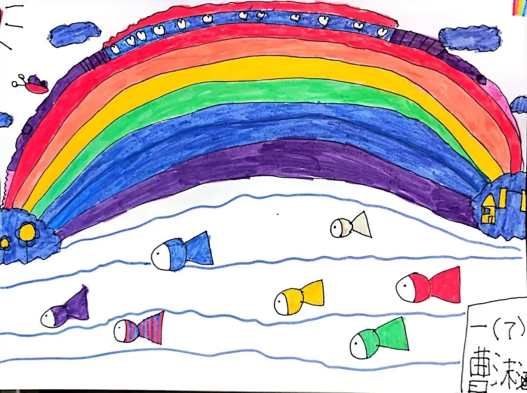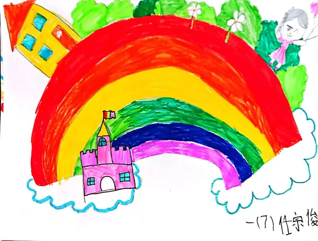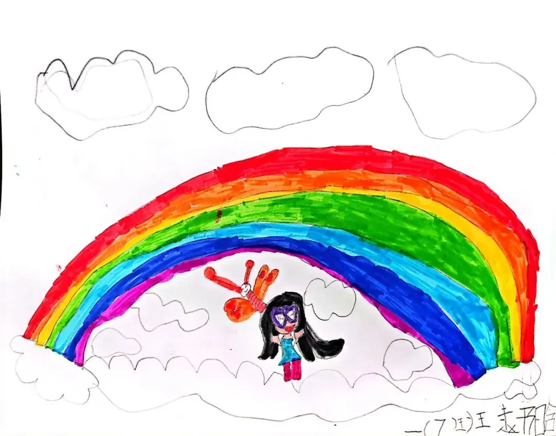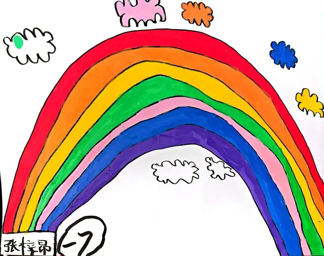 一年级宝贝的《七彩飞虹》来啦!笔下的彩虹有糖果味的弧线、云朵做的阶梯,还有藏在色彩里的小秘密~ 每一笔都是童真的绽放,每一抹色彩都是想象力的跳跃。快下滑欣赏小画家们的治愈作品,一起被这份纯粹的美好打动吧!
