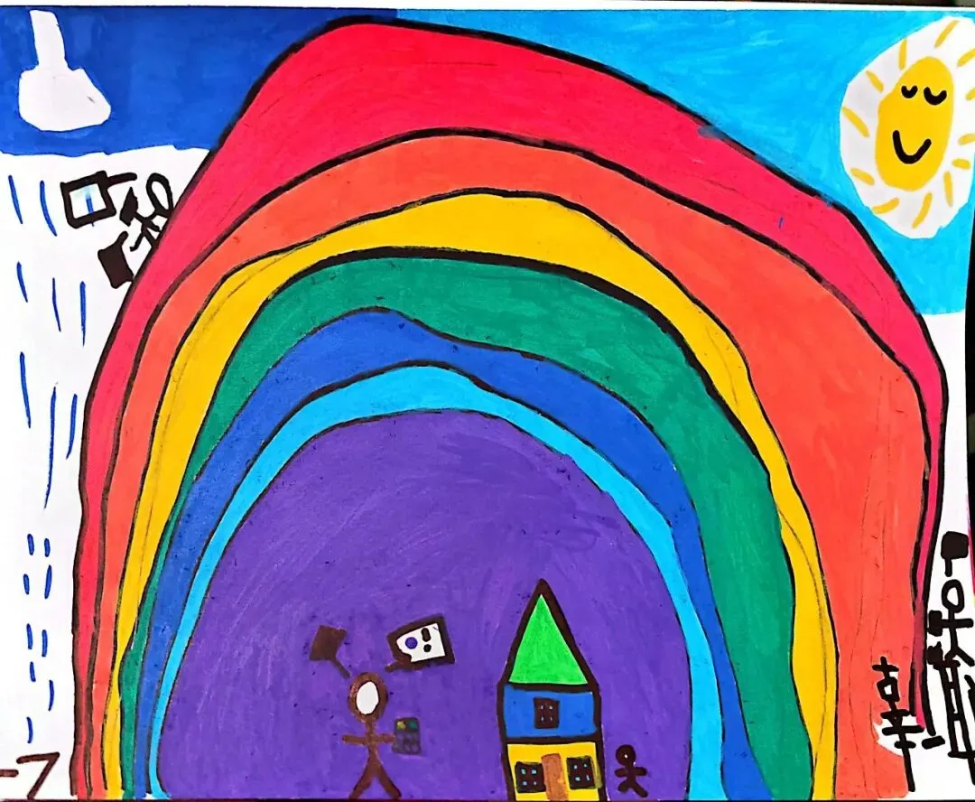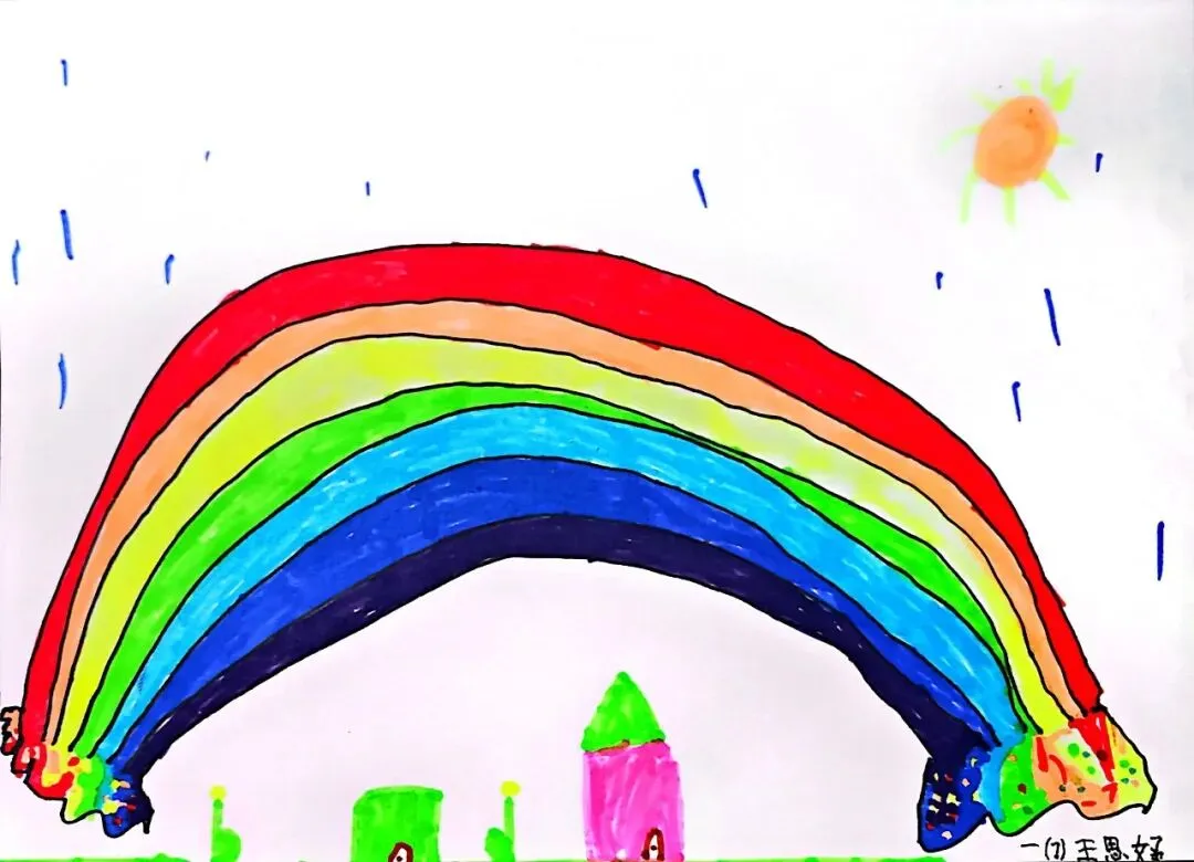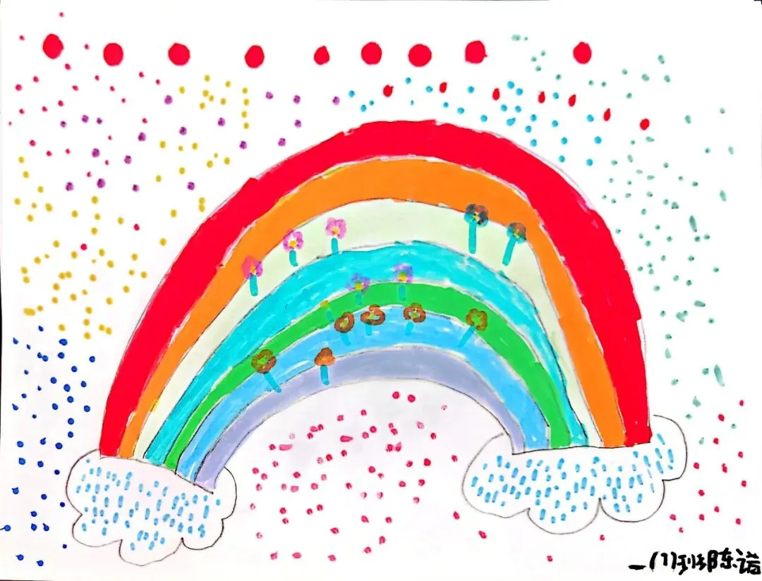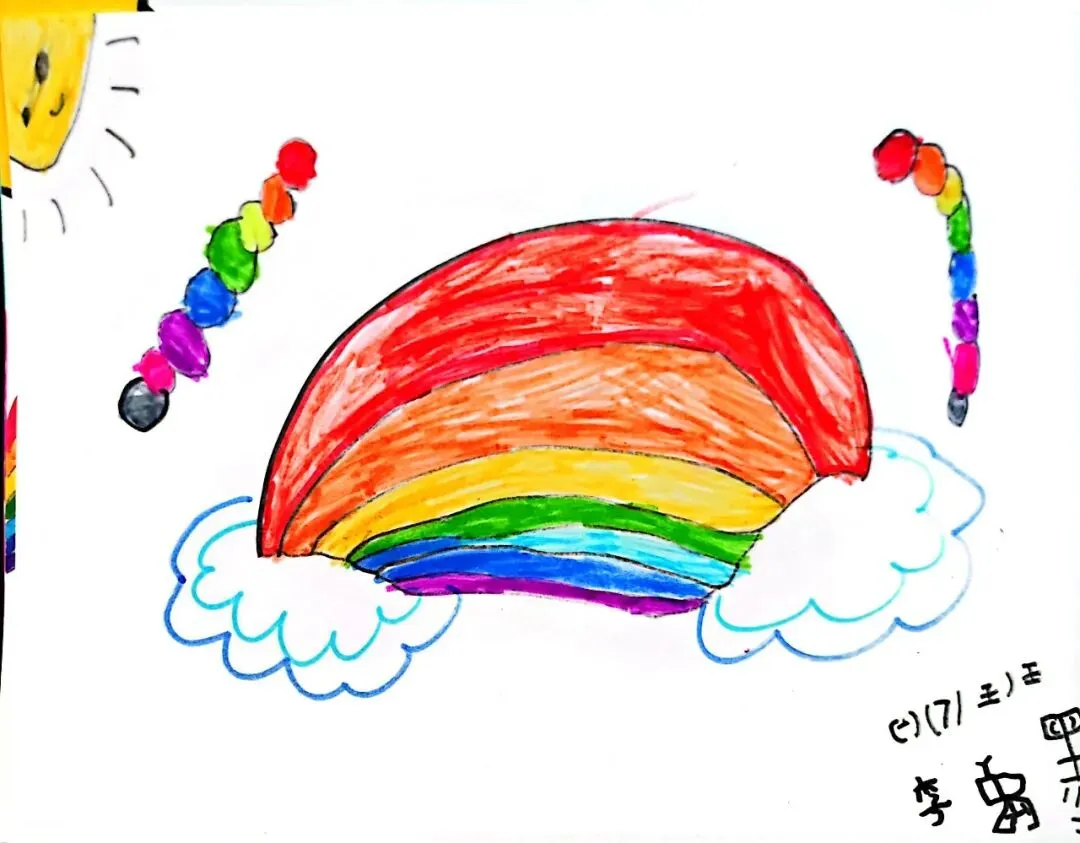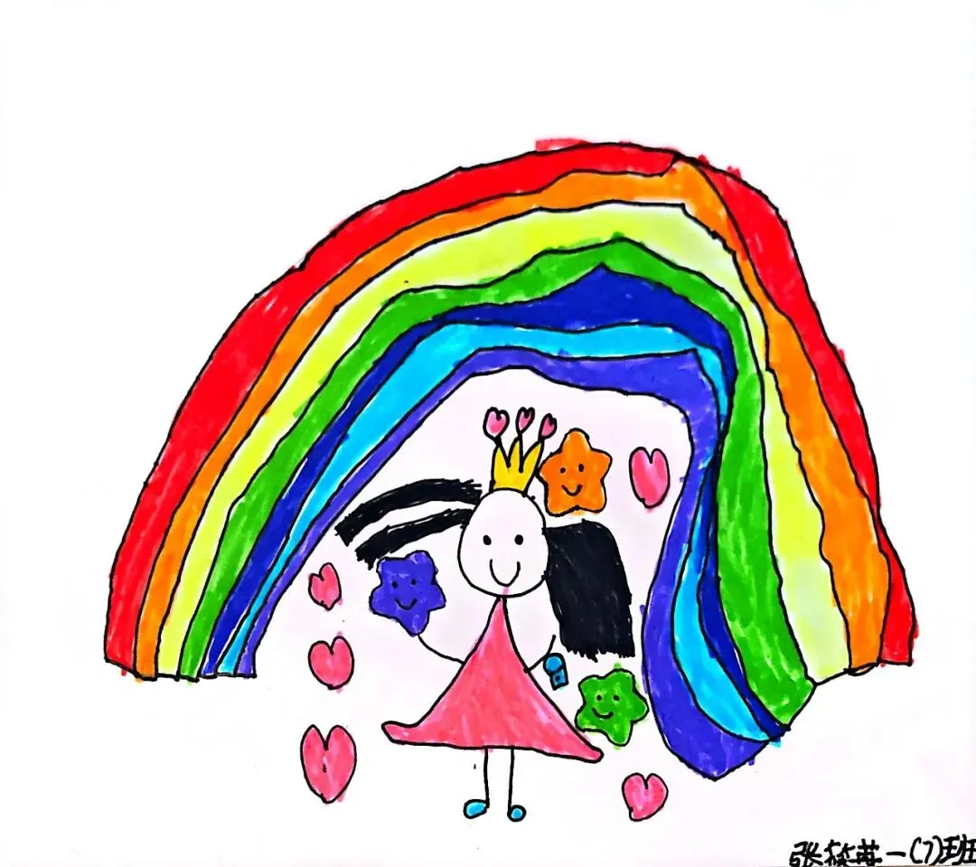 一年级宝贝的《七彩飞虹》来啦!笔下的彩虹有糖果味的弧线、云朵做的阶梯,还有藏在色彩里的小秘密~ 每一笔都是童真的绽放,每一抹色彩都是想象力的跳跃。快下滑欣赏小画家们的治愈作品,一起被这份纯粹的美好打动吧!