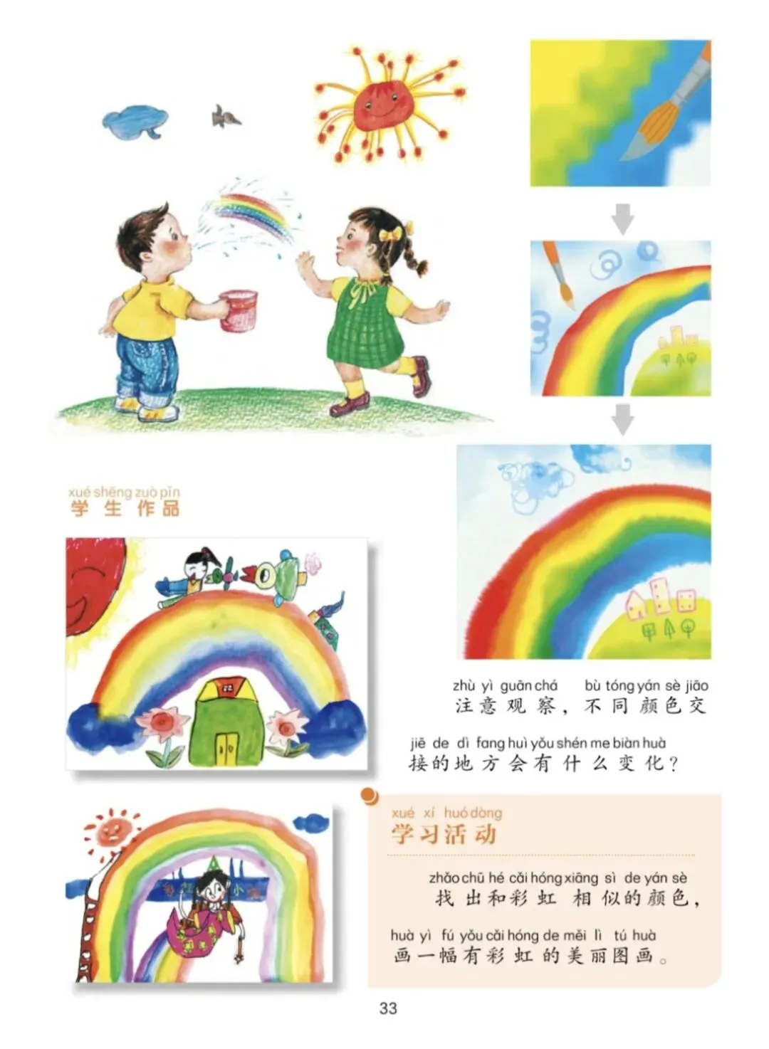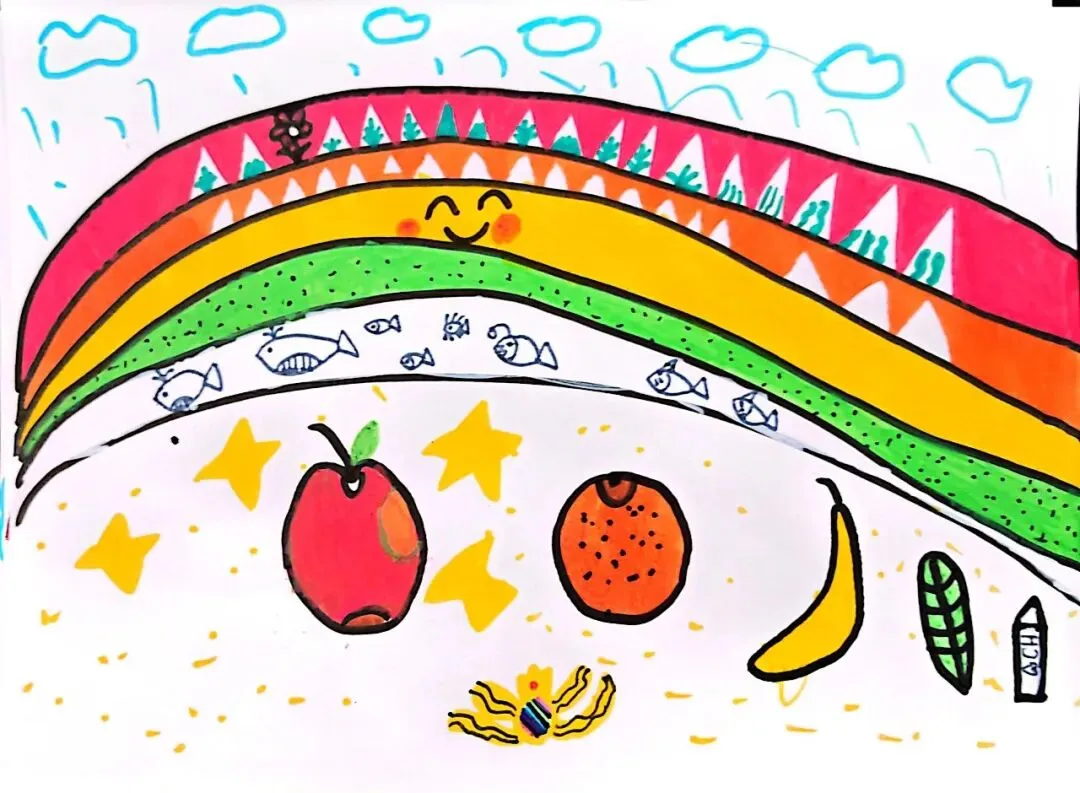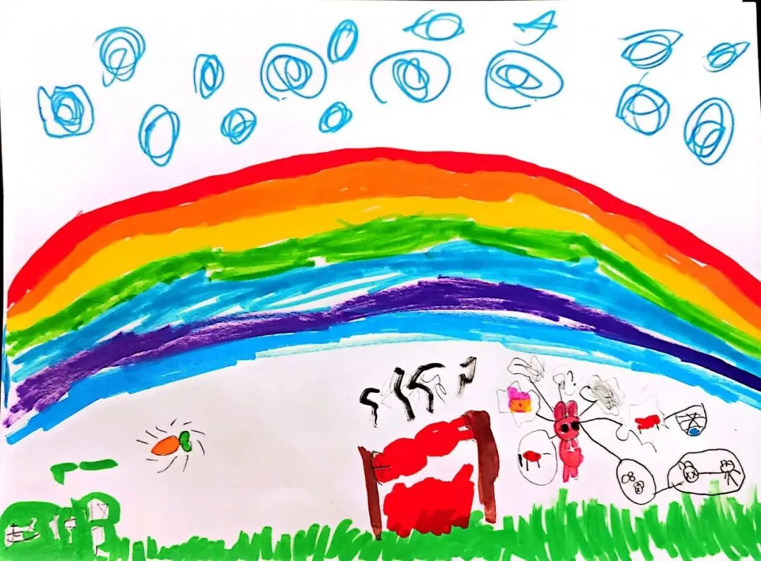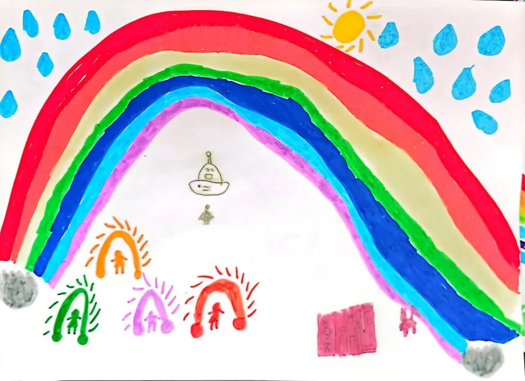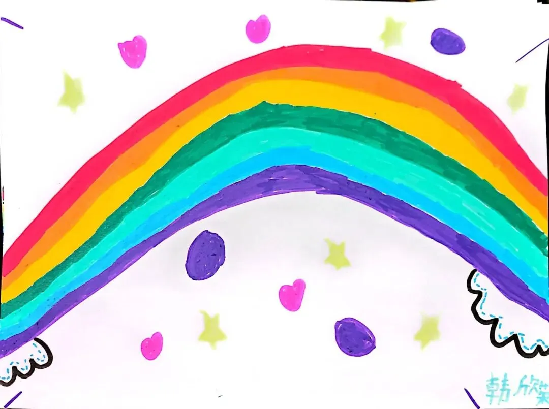 一年级宝贝的《七彩飞虹》来啦!笔下的彩虹有糖果味的弧线、云朵做的阶梯,还有藏在色彩里的小秘密~ 每一笔都是童真的绽放,每一抹色彩都是想象力的跳跃。快下滑欣赏小画家们的治愈作品,一起被这份纯粹的美好打动吧!