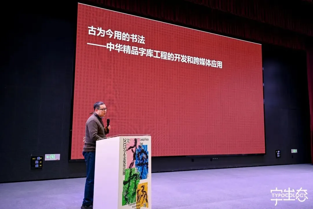 方正字库字体设计总监汪文以《古为今用的书法》为题,系统介绍了“中华精品字库工程”。该项目自2017年启动,已发布三期共47款字体,涵盖颜真卿、苏轼、王羲之等历代名家书风,并创新采用OpenType技术实现“一字多形”。尤为引人注目的是,该工程已启动公益计划,向公益组织、学校、媒体及个人免费开放使用,并将于2026年推出第四期14款新字体,包括甲骨文、金文、秦简等古文字体系。